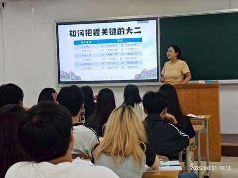 班会伊始,贺文哲向大家抛出问题“大二,对我们来说究竟意味着什么?”,从大一到大二,是大学生从“适应期”向“定向期”过渡的关键阶段,无论是学习、生活还是个人规划,都会呈现出明显的差异。这种变化既是对大学生自主能力的考验,也意味着更多的选择权和成长空间。贺老师从学习模式、生活状态、专业认知、个人规划、社团实践、心态变化六大维度带领大家依次分析如何规划大二生活。 此外,她也从如何合理设置目标,培养成长型思维等角度鼓励大家把稳学习节奏,努力参加学科竞赛,让大二生活实起来。