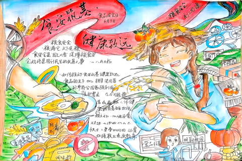 活动自开展以来,得到同学们的热烈反响,一份份充满了同学们对食品安全监督的作品蜂拥而至。同学们以纸为鞘,以笔为刃,于方寸间展现出粮食的来之不易以及对食品安全的重视。部分作品以细腻笔触勾勒出耕耘者的辛劳,将“粒粒皆辛苦”的古训从文字化为可感的画面,唤醒对食物本源的敬畏;另有作品则立足更高视角,聚焦食品安全监督的关键意义,以深刻思考表达出超越表层认知的见解。这些手抄报剥开了一层层迷雾,把对食品安全的忽视逐渐演变到重视乃至进行监督行动,体现了同学们对于国家安全建设的义不容辞。